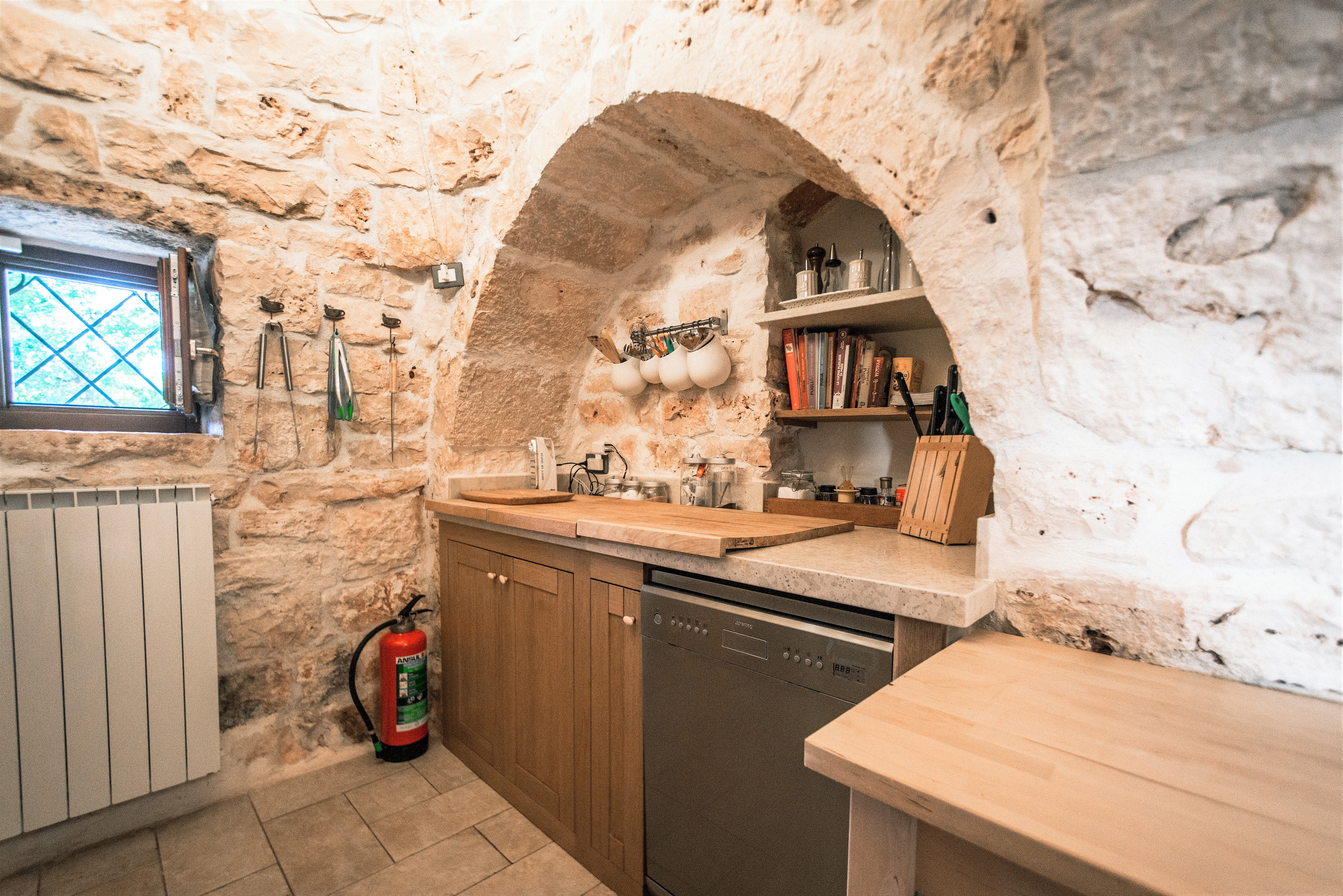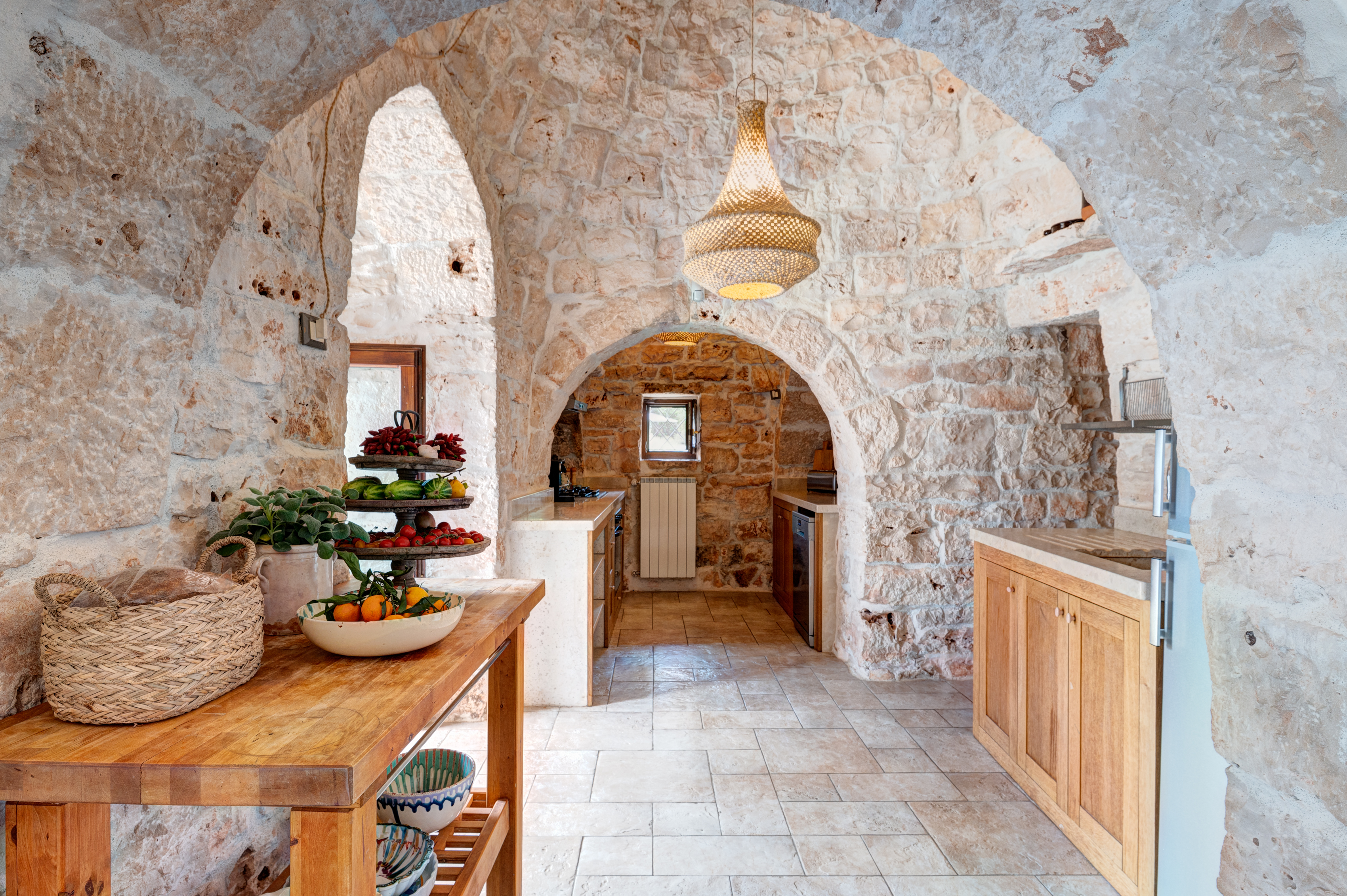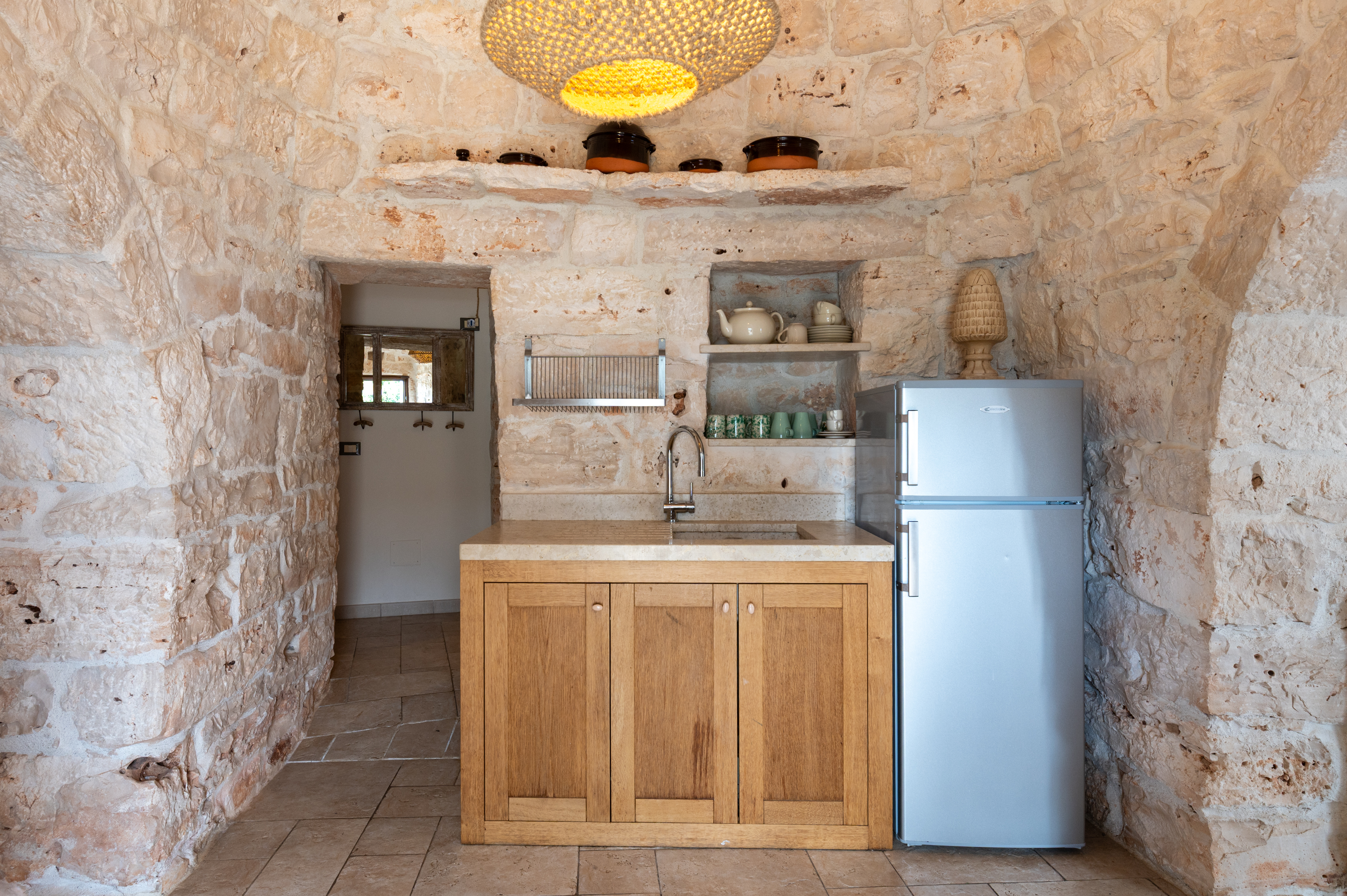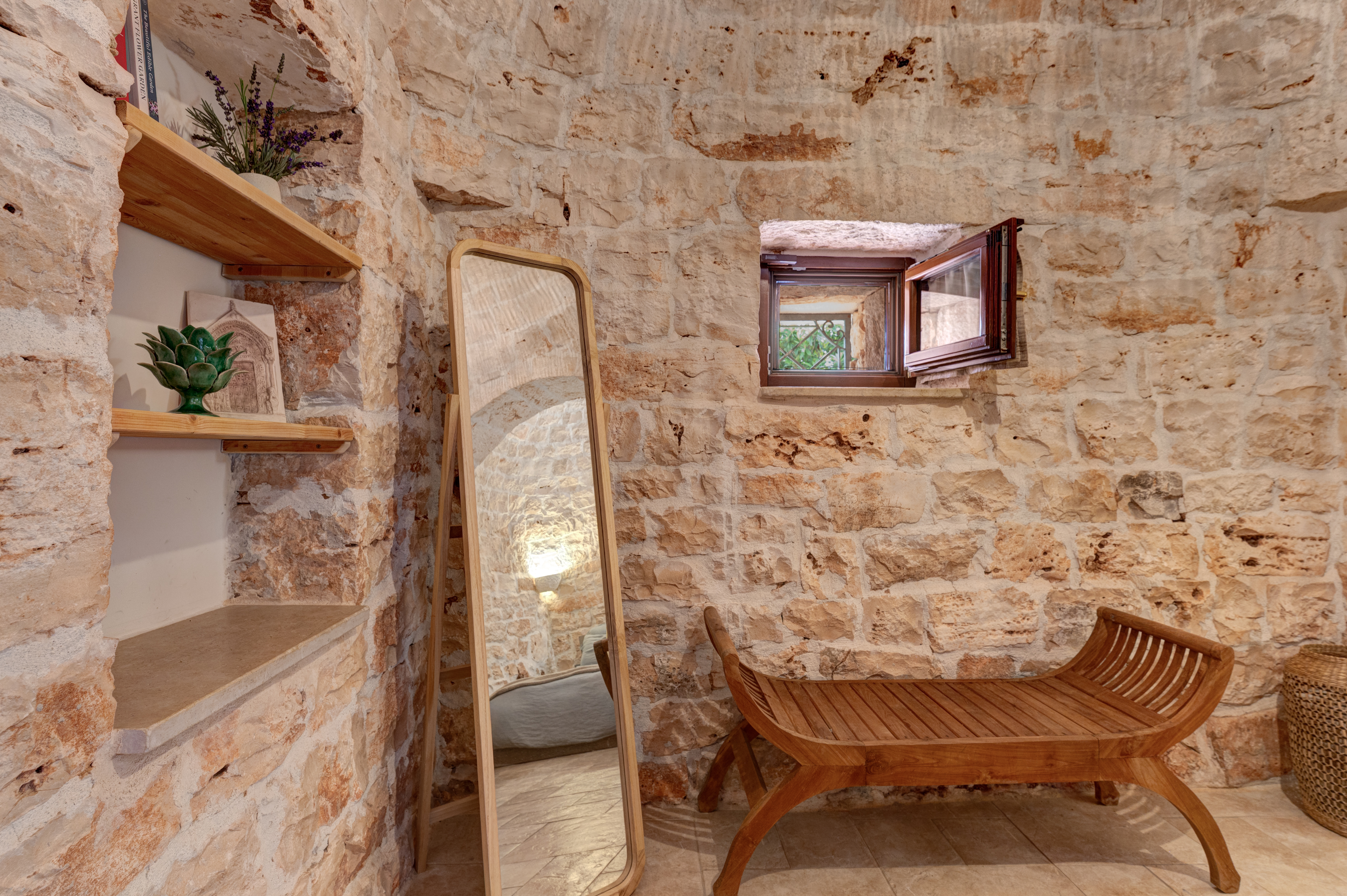 Attached to the trullo main building but entered via the outside near the pool are the lamie.