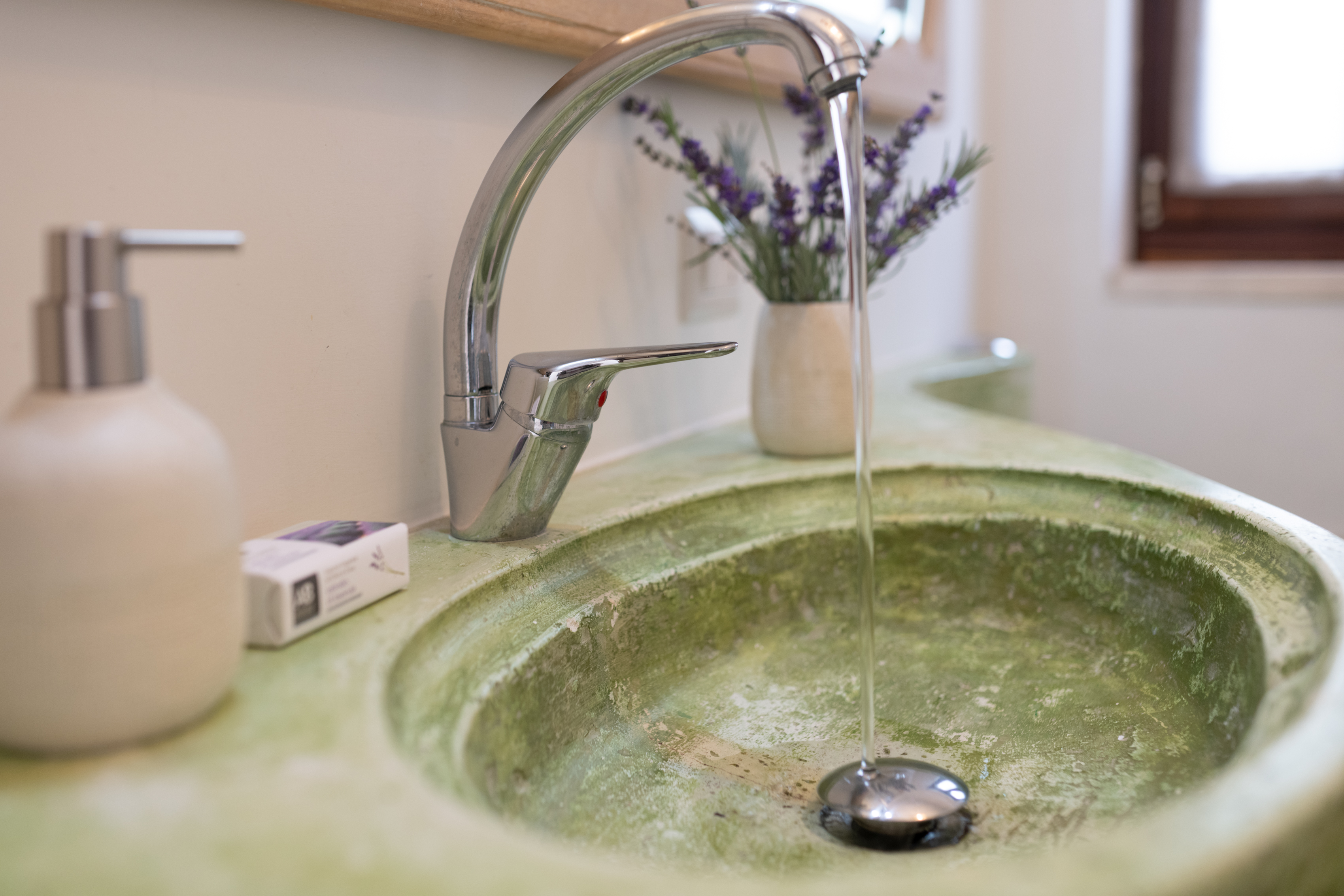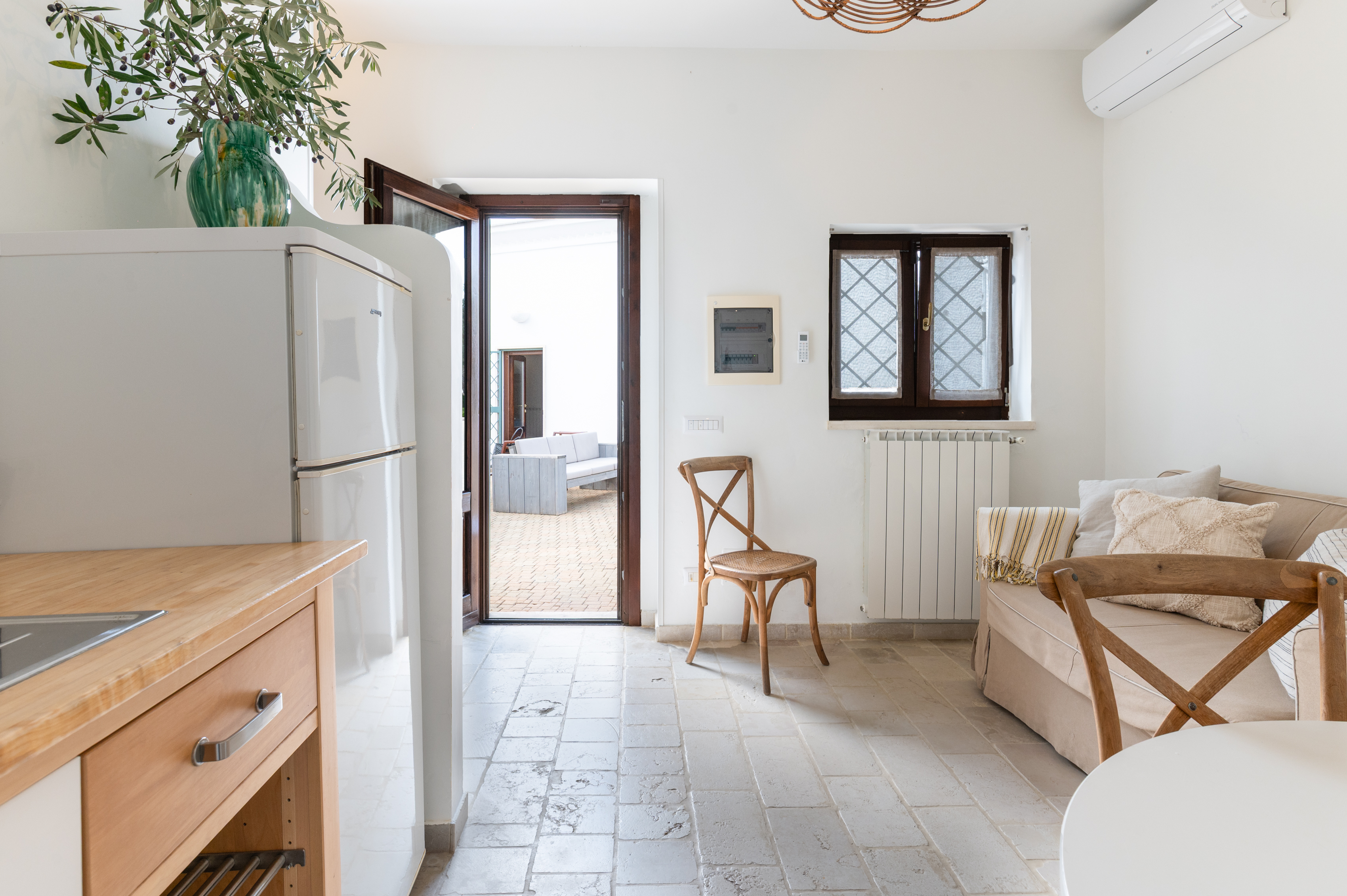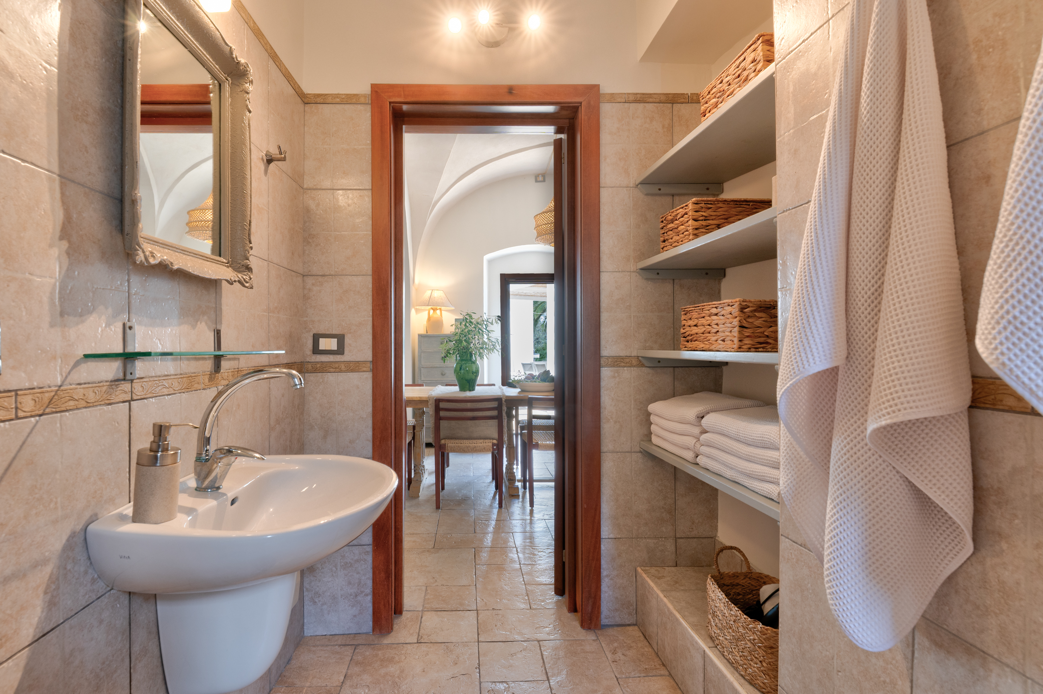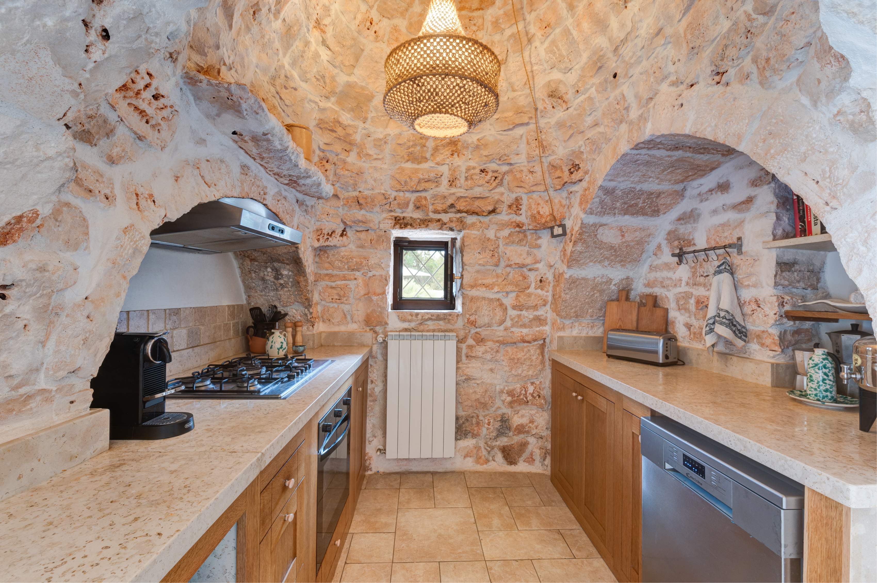 Attached to the trullo main building but entered via the outside near the pool are the lamie.