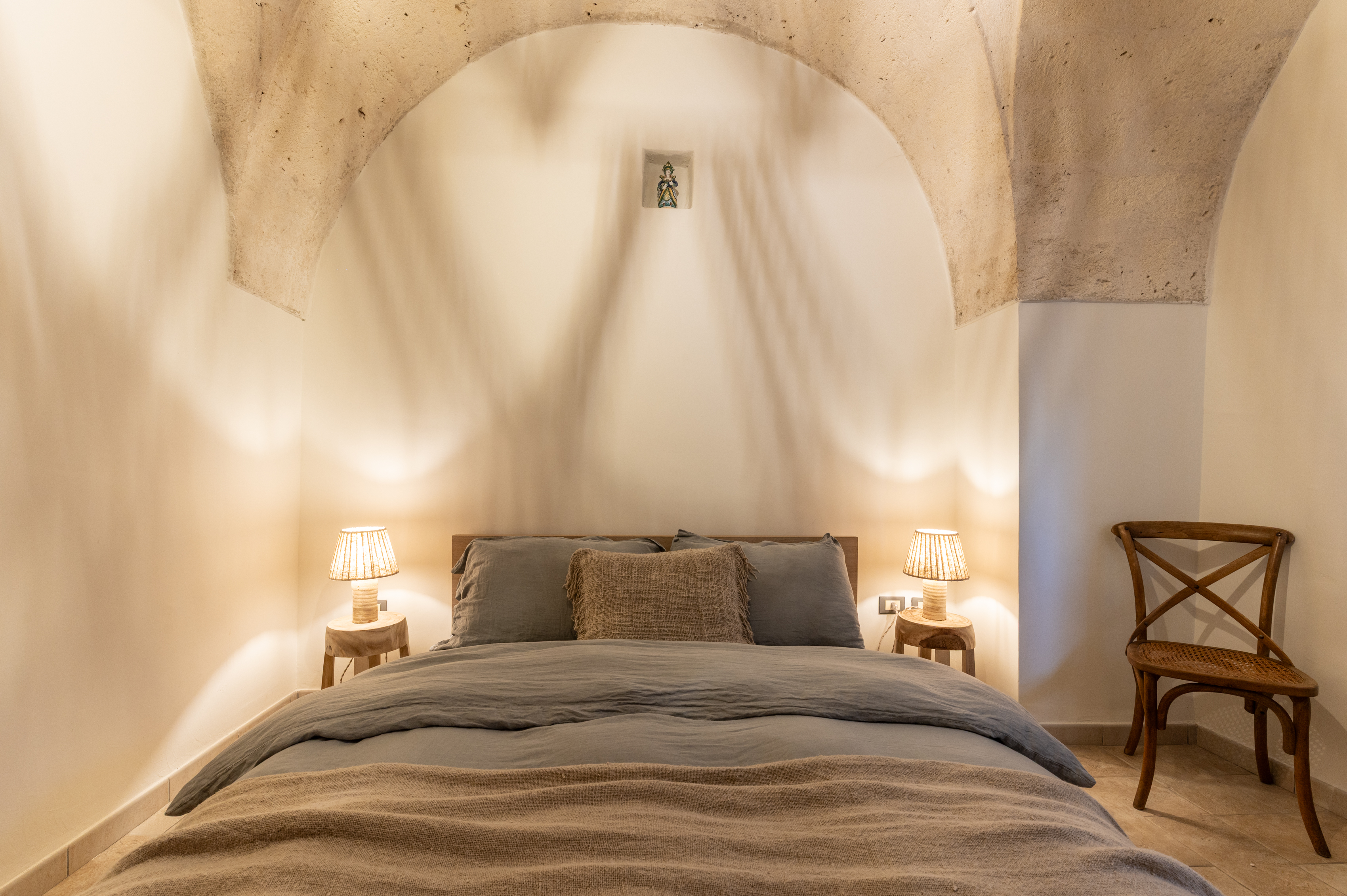 VILLETTA SUITE (BEDROOM 5) which sleeps two is an independent unit just a few paces away from the main trullo and consists of a bedroom with en-suite facilities and small lounge with sofa bed for 1 (on request) with a kitchenette area.